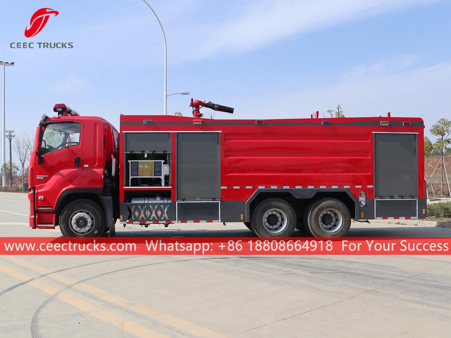 아프가니스탄으로 수출되는 최고의 ISUZU GIGA 10CBM 건식화약소방차, ISUZU 신형 GIGA 좌측 핸들 구동 모델 6x4 섀시, ZF 16단 수동 기어박스, ISUZU 380HP 디젤 엔진, 페인팅 및 로고는 요구 사항에 따라 달라집니다.