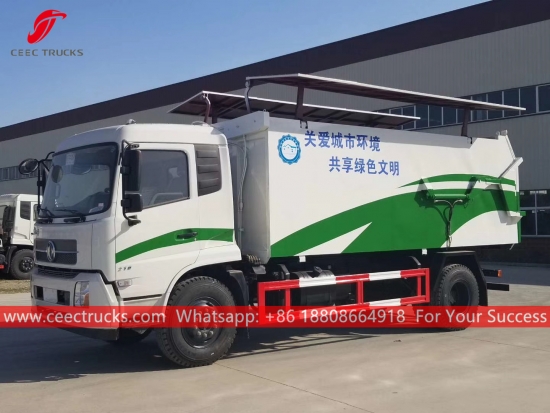동풍 12cbm 쓰레기 덤프트럭, 4x2 섀시, 8단 수동 기어박스, 커민스 190HP 디젤 엔진, 주로 쓰레기 처리장 서비스, 간편한 조작을 위한 유압식 뒷문과 윗 덮개, 중간 리프팅 장치, 모든 도장 및 로고는 요구 사항에 따라 달라집니다.