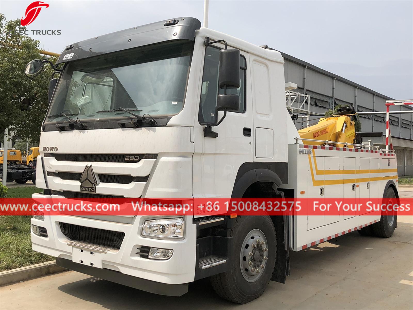 SINOTRUK HOWO 12톤 도로 구조차, HOWO 4x2 클래식 LHD 섀시, 수동 5단 기어박스, SINOTRUK 280HP 디젤 엔진, 유압 실린더가 장착된 리프팅 붐 작동, 도장 및 로고는 요구 사항에 따라 달라집니다.