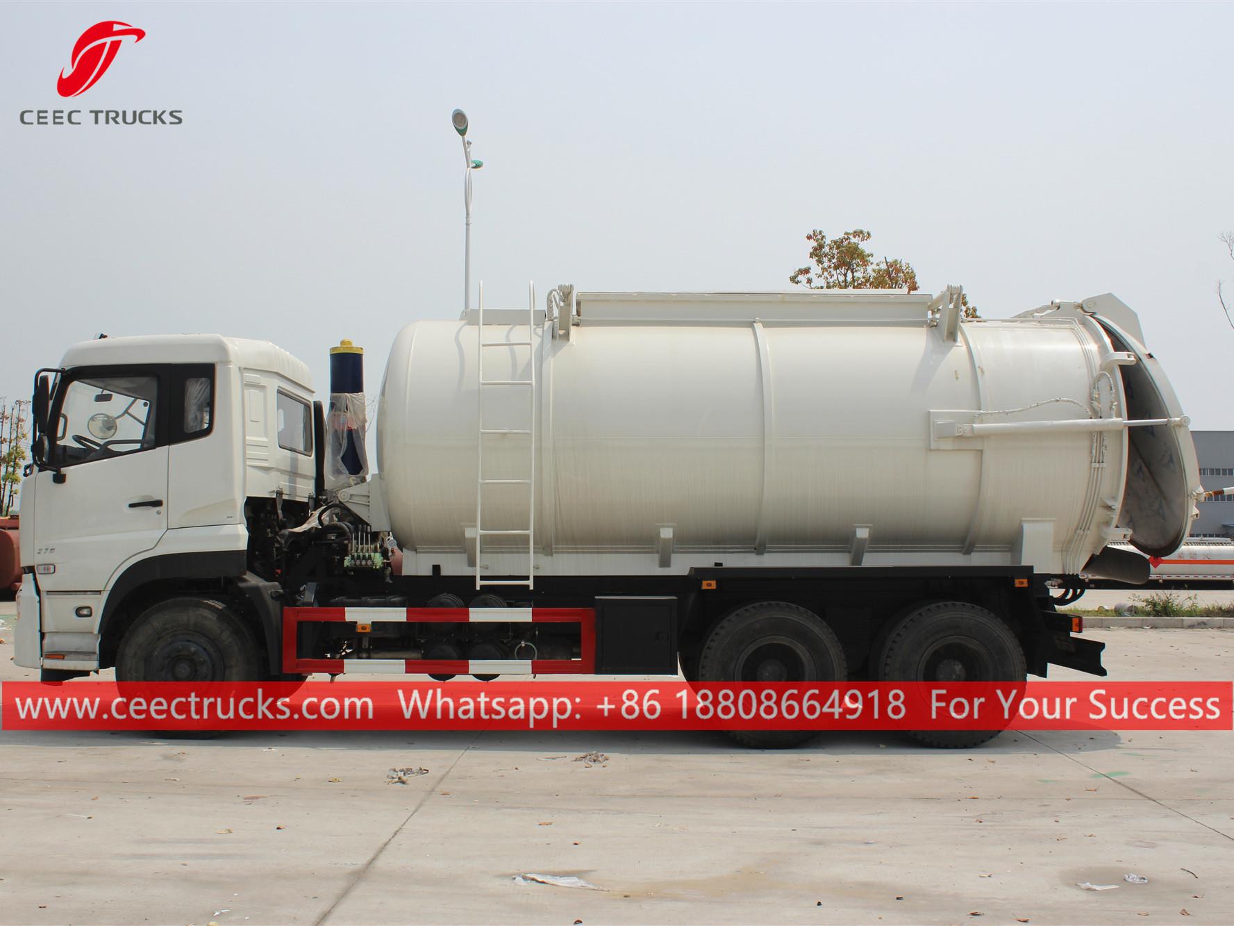 동풍 20cbm 진공 트럭, 좌측 핸들 구동 모델 6x4 섀시, FAST 9단 수동 기어박스, CUMMINS 270HP 디젤 엔진, 페인팅 및 로고는 요구 사항에 따라 달라집니다.