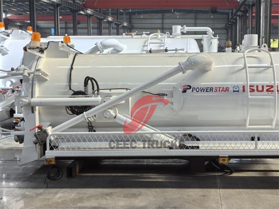 3입방미터 흡입차의 상부에는 고출력 진공 흡입 펌프가 장착되어 있어 강력한 음압을 발생시켜 먼지와 오물을 빠르게 탱크로 빨아들일 수 있습니다.