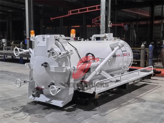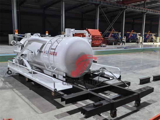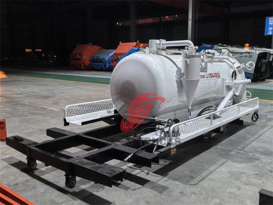 3입방미터 흡입 트럭의 상부는 핵심 기능 구성 요소로, 주로 침전조, 하수구, 하수 처리장 등의 장소에서 흙과 오물을 청소하는 데 사용됩니다.