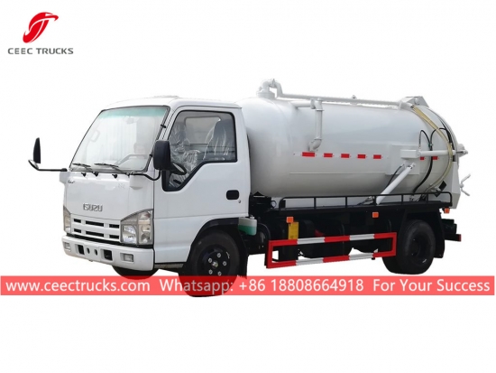 이스즈 4cbm 진공 탱커 트럭, 이스즈 좌측 핸들 모델 4x2 섀시, MSB 5단 수동 기어박스, 이스즈 130HP 디젤 엔진, 페인팅 및 로고는 요구 사항에 따라 달라집니다.