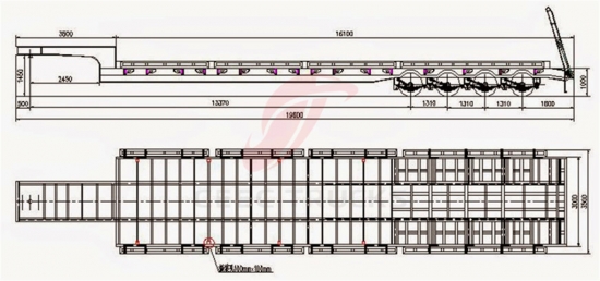 에이†주요 공정: 시리즈 트레일러 프레임은 스트레이트 스트링거 또는 구스넥 스트링거를 사용하는 웨어 빔 구조입니다. 웨브 높이는 400mm에서 500mm까지 가능하며, 자동 서브머지드 아크 용접, 프레임, 빔, 스트링거 전체에 대한 샷페닝 용접이 이루어집니다.
