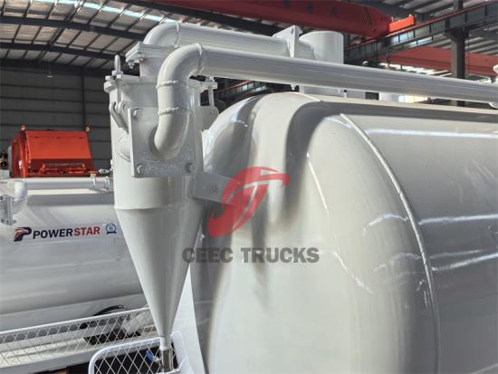 에이- 펌프를 보완하는 것은 최대 5,000리터의 하수를 저장할 수 있는 거대한 저장 탱크인 흡입 탱크입니다. 대용량 덕분에 장시간 운전에도 유용하며, 빈번한 비우기 없이 생산성과 효율성을 극대화할 수 있습니다. 흡입 탱크 본체는 일반적으로 고강도 내식성 강판으로 제작되며, 내부는 부식성 먼지와 장기간 접촉하는 환경에 적합하도록 방청 및 방식 처리되어 있습니다.