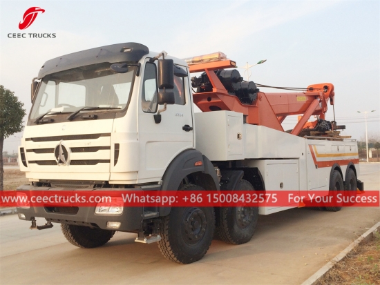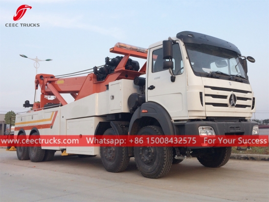 50톤 레브커버리 트럭, BEIBEN 클래식 8x4 LHD 섀시, 수동 12단 기어박스, WEICHAI 340HP 디젤 엔진, 유압 실린더가 장착된 리프팅 붐 작동, 도색 및 로고는 요구 사항에 따라 달라집니다.