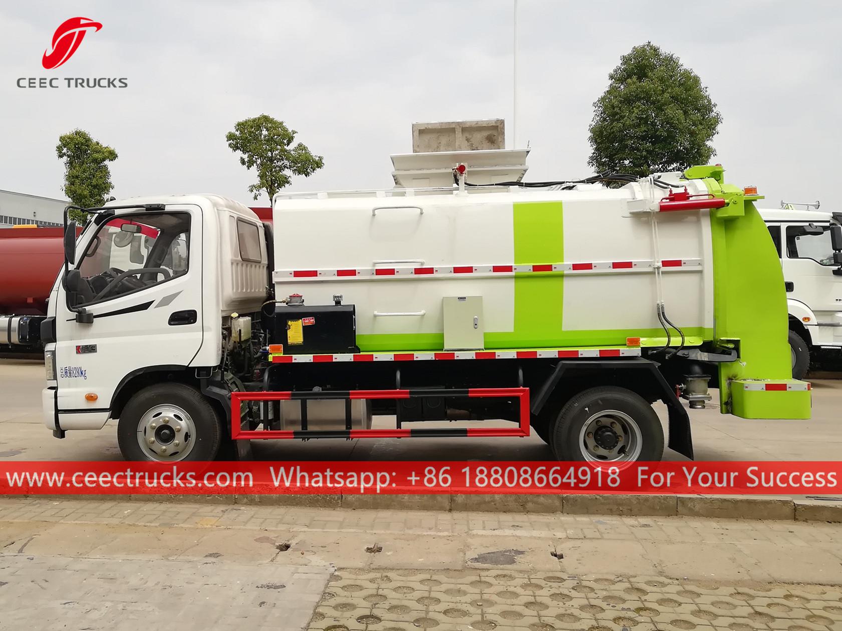 FOTON 6cbm 주방 쓰레기 수거 트럭, FOTON 4x2 섀시, 수동 5단 수동 기어박스, CUMMINS 142HP 디젤 엔진, 자동 측면 리프팅 장치, 유압식 후면 도어 장착, 도색 및 로고는 요구 사항에 따라 달라집니다.