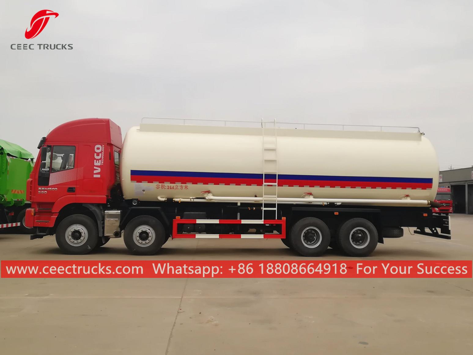 36.4CBM 벌크 시멘트 탱커 트럭, IVECO 8*4 섀시, FAST 12단 변속기, SFH 390HP 디젤 엔진, 분말 공급 시스템 장착. 모든 도색 및 로고는 요구 사항에 따라 달라집니다.