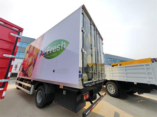 다중 온도 구역 독립 제어: 모듈형 화물칸 설계(예: 3온도 구역 독립 통풍 덕트)를 통해 PID 알고리즘을 통해 각 구역의 ±0.5℃ 정확도 제어를 통해 해산물(-25℃), 과일 및 채소(2~8℃), 의약품(15℃) 등 혼합 적재 요구 사항을 충족합니다.