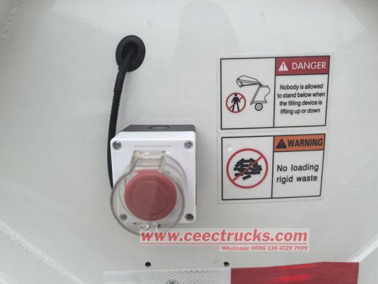 ● 비상 정지 버튼이 설치되어 있어 어떠한 상황이나 위치에서도 쓰레기 압축 장치를 즉시 중단할 수 있어 작업자와 장비를 모두 보호합니다.