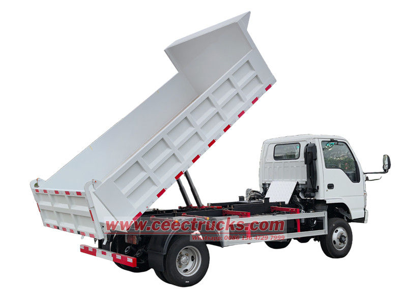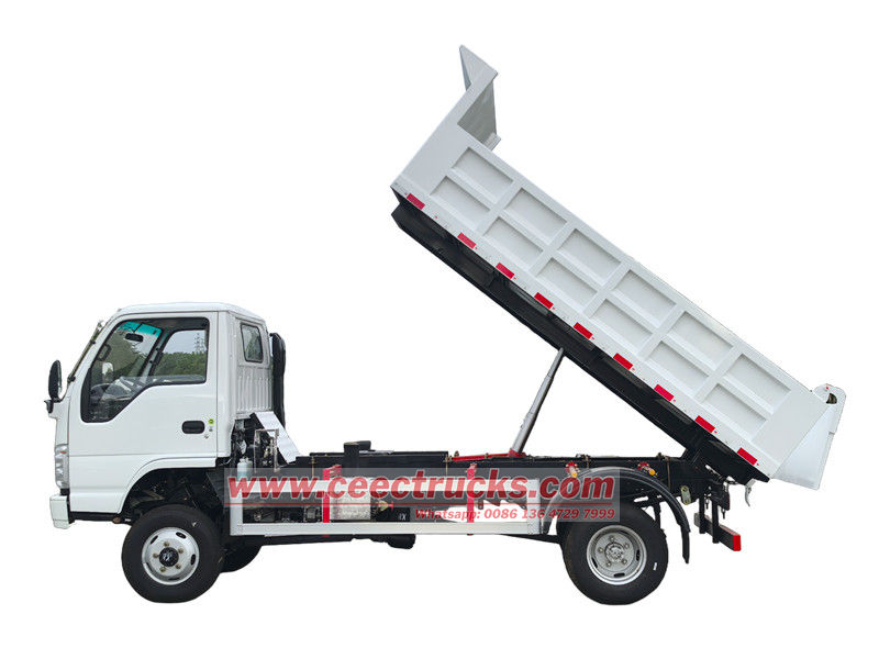 Different payload capacity optional이스즈 2톤 소형 덤프 트럭은 벌크 자재 운송 및 덤핑 전용 엔지니어링 차량입니다. 핵심 기능은 유압식 리프팅 시스템으로 구동되는 화물칸의 자동 하역 기능입니다. 이스즈 소형 덤프트럭 칸막이는 고강도 강판으로 용접되어 있습니다. 유압 실린더 리프팅을 통해 최대 60°의 덤핑 각도를 구현하여 물품을 자동으로 하역하고 인력과 시간을 절약합니다.