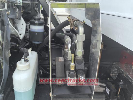 이스즈 소형 덤프 트럭은 주로 섀시, 유압 리프팅 시스템, 화물칸, 그리고 제어 시스템으로 구성됩니다. 화물칸은 고강도 강판으로 용접되었으며, 후방에는 자동 잠금 후크 구조를 채택하여 운송 중 밀폐성을 보장합니다. 유압 시스템은 오일 펌프, 다단 유압 실린더, 제어 밸브, 연료 탱크로 구성되며, 화물칸의 승하강은 운전석의 조이스틱으로 제어됩니다.