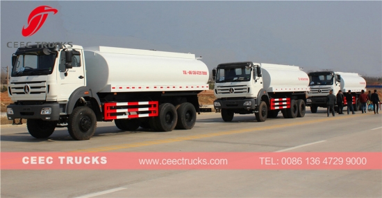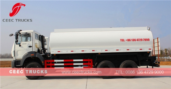 초강력 Beiben 20000리터 물탱크차는 North Benz 사륜구동 섀시, WEICHAI 380HP 엔진, 간편한 조작을 위한 고속 9단 수동 기어박스, 고강도 강철 물탱크차 소재를 사용하여 물탱크차의 서비스 수명을 연장합니다.