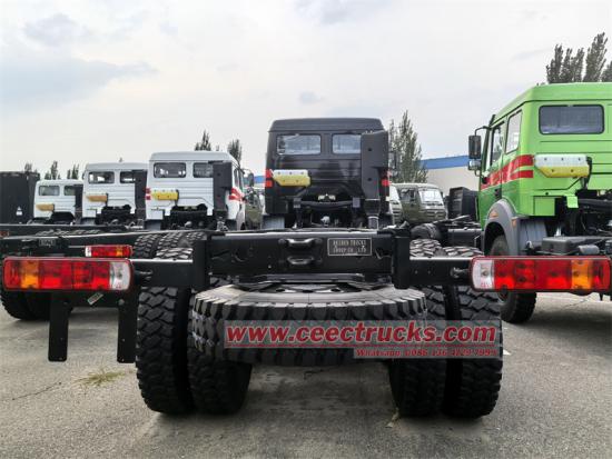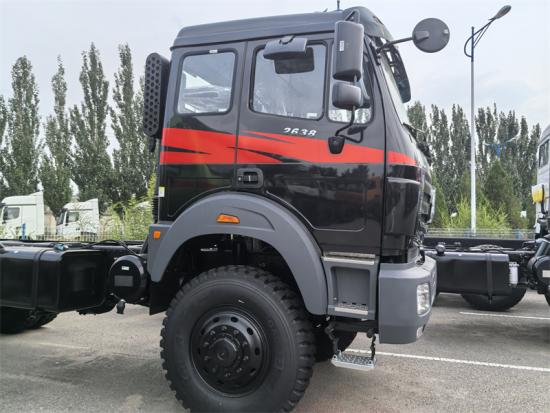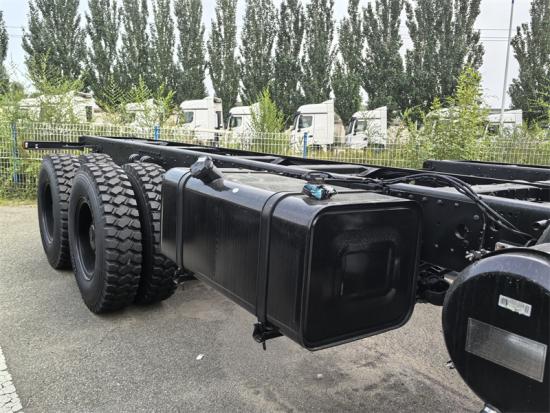 베이벤 6x6 사륜구동 섀시는 베이벤 NG80 2638AP 모델 캡을 사용하고, 사륜구동이며, 휠베이스는 4450+1450mm이고, 웨이차이 WP10.380E32 엔진, 고속 9단 변속기, 7톤 프런트 액슬, 18톤 리어 듀얼 액슬, 12.00R20 타이어를 장착하고, 최대 속도는 90km/h입니다.