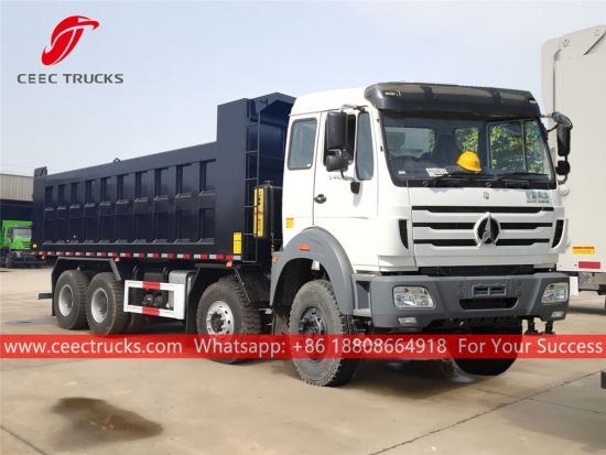 베이벤 40톤 덤프트럭, 베이벤 8x4 섀시, FAST 12단 수동 변속기, 유명 중국 브랜드 웨이차이 340마력 디젤 엔진, 고강도 강철 덤프 차체, HYVA 또는 국산 유압 리프터 옵션 장착. 모든 도색 및 로고는 요구 사항에 따라 달라질 수 있습니다.