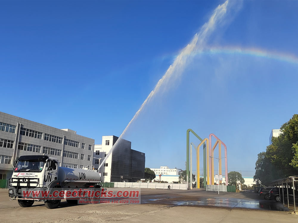3.소방 지원 및 비상 운영:베이벤 오프로드 물대포 트럭은 60~100m 범위의 고압 물대포를 장착하고 있습니다. 화재 진압 및 냉각, 비상 화재 진압에 활용 가능하며, 방역 및 소독용 소독제와 함께 사용하여 공공 비상사태에 대응할 수도 있습니다.