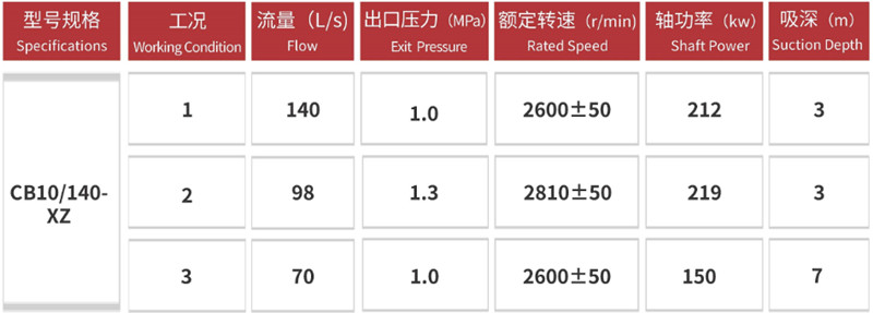 이 펌프는 정격 유량 70~140L/s, 정격 압력 약 1.0MPa, 최대 양정 100m 이상을 자랑합니다. 빠른 시동, 높은 흡입 양정, 안정적인 급수가 특징입니다. 강력한 흡입력으로 빠른 자흡식(진공 급수 장치와 함께 사용 시 최대 약 7m 높이까지)이 가능합니다.