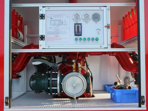 이스즈 소방차는 이스즈 GIGA 4x2 섀시를 기반으로 개조되었습니다. 강력한 출력을 자랑하는 6UZ1-380HP 엔진과 부드러운 변속을 위한 FAST 12단 변속기가 장착되어 있습니다. 차량의 전체 외부 크기는 7,900x2,500x3,500mm이며, 휠베이스는 4,600mm입니다. 차량 전면에는 CB10/60 소방 물대포가 장착된 소방 펌프실이 있습니다. 차량 중앙에는 8,000L 탄소강 물탱크가 있어 장기간의 소방 활동이나 살수 작업에 필요한 많은 양의 물을 저장할 수 있습니다.