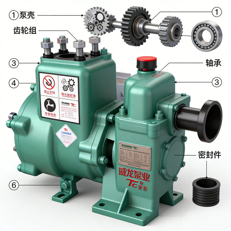 1. This series of pumps is a self-priming centrifugal pump with a speed increaser, mainly composed of a pump body, impeller, mechanical seal, shaft, and speed increaser.