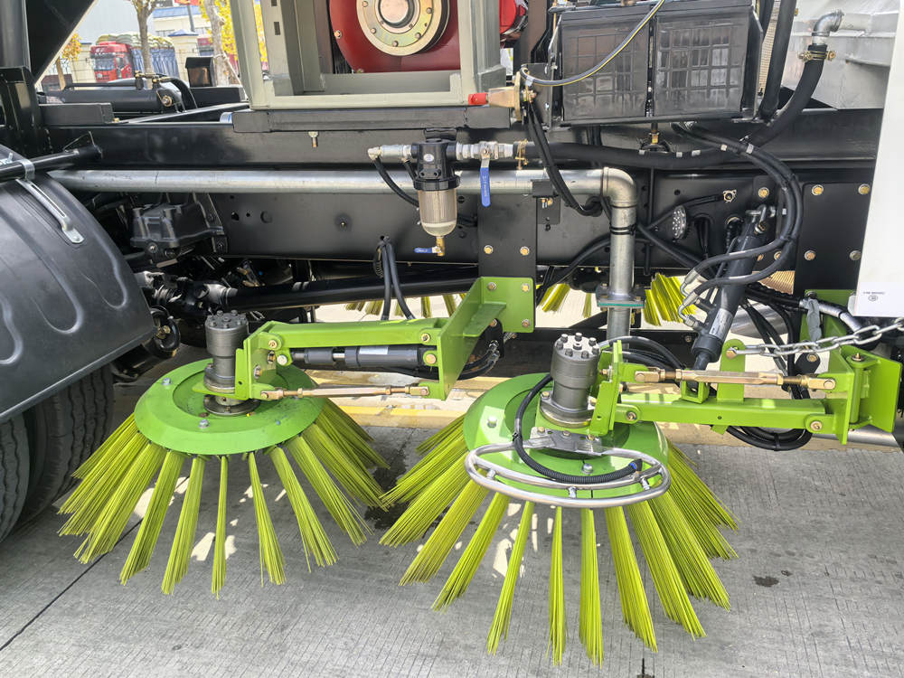 에이-†이스즈 도로 청소 트럭은 고강도 나일론 강모를 사용하며, 메인 브러시와 보조 브러시가 함께 작동하여 다양한 도로 상황에 맞춰 속도와 접지력을 조절합니다. 브러시 각도는 자동으로 조절되어 청소 시 사각지대가 발생하지 않도록 합니다. 또한, 자동 장애물 회피 기능을 갖추고 있어 장애물 발생 시 신속하게 들어올릴 수 있습니다.