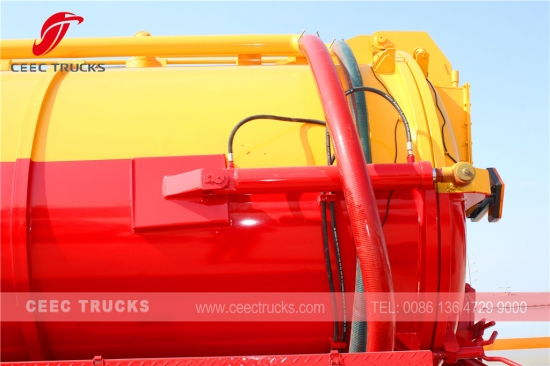 하수 진공 트럭(하수구 청소차, 하수 탱크차, 하수구 트럭, 오수구 비우기, 배수구 비우기, 진공 트럭, 배수구 비우기, 폐기물 진공 탱크차, 진공 탱크차, 하수 트럭이라고도 함) 오수, 슬러지, 정화조, 원유 등의 액체와 작은 돌, 벽돌 등의 고형물을 수거, 운반, 배출하는 데 사용됩니다. 하수구, 정화조, 오수통, 도랑 등의 청소에 적합하며, 환경 및 위생 분야에서 널리 사용됩니다.