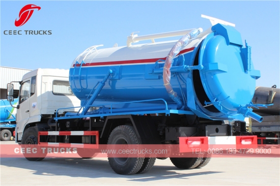 동풍 10000L 정화조 비우기 장치, 커민스 170HP 디젤 엔진, 6단 수동 기어박스, 최대 10cbm의 고강도 강철 재료 탱커, WEILONG 진공 펌프, 폐기물 배출용 유압 리프팅 장치, 페인팅 및 로고는 요청에 따라 달라집니다.