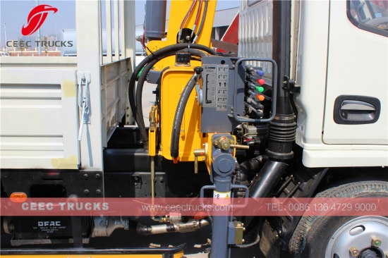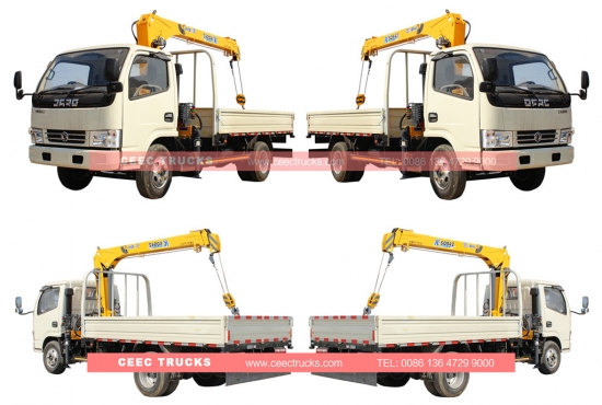 동풍 최고 브랜드 2T 붐 크레인 트럭, 인기 상품! 차오차이 디젤 엔진 95마력, 수동 5단 기어박스, 좌핸들 및 우핸들 모델 옵션 제공. SK2SQ2Q 텔레스코픽 붐 크레인 장착, 최대 2,000kg까지 리프팅 가능. 고객 맞춤형 리모컨 제공