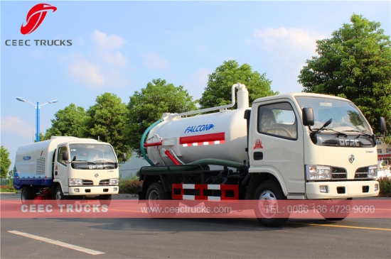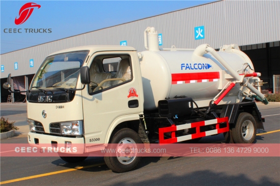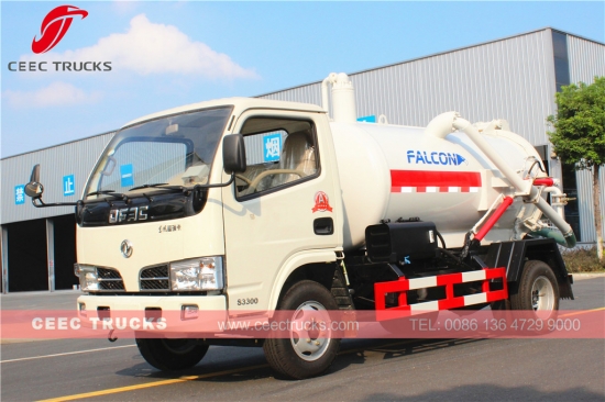 동풍 4000L 진공 하수 흡입 트럭은 차오차이 95마력 디젤 엔진, 5단 수동 기어박스, 최대 4cbm의 고강도 강철 재질 탱커, 표준으로 WEILONG 진공 펌프를 사용하며, 도장 및 로고는 요청에 따라 달라집니다.