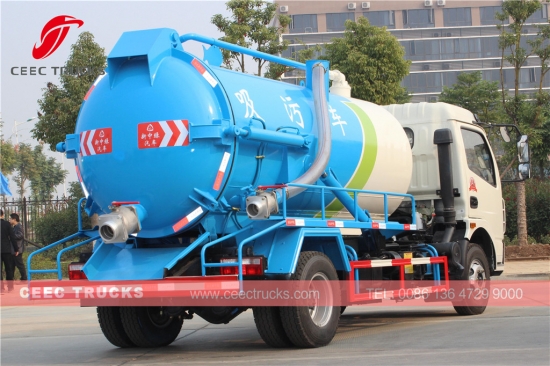 동풍 8000L 침전지 비우기 장치, 차오차이 120HP 디젤 엔진, 5단 수동 기어박스, 최대 8cbm의 고강도 강철 재질 탱커, 표준으로 제공되는 WEILONG 진공 펌프, 폐기물 배출을 위한 유압 리프팅 장치, 페인팅 및 로고는 요청에 따라 달라집니다.