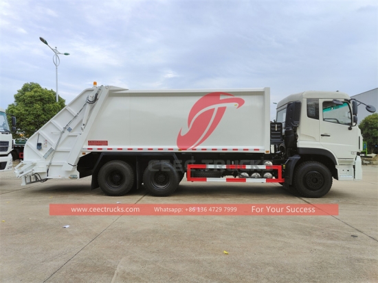 동풍 25CBM 리어 로딩 쓰레기 수거차는 동풍 티안롱(Tianlong) 대형 섀시를 기반으로 제작되었으며, 420마력 엔진과 25세제곱미터(㎥) 쓰레기 압축기를 탑재했습니다. 차량의 공차 중량은 14톤, 총 중량은 25톤, 최고 설계 속도는 90km/h, 최저 지상고는 250mm, 휠베이스는 4,350mm, 차체 크기는 10,200mm×2,500mm×3,250mm입니다.