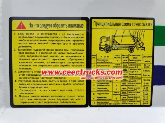 하역 시에는 필러를 들어 올리고 푸시 셔블이 쓰레기를 상자 밖으로 수평으로 밀어냅니다. 전체 과정은 운전석이나 후면 제어 박스의 버튼 하나로 조작할 수 있습니다.