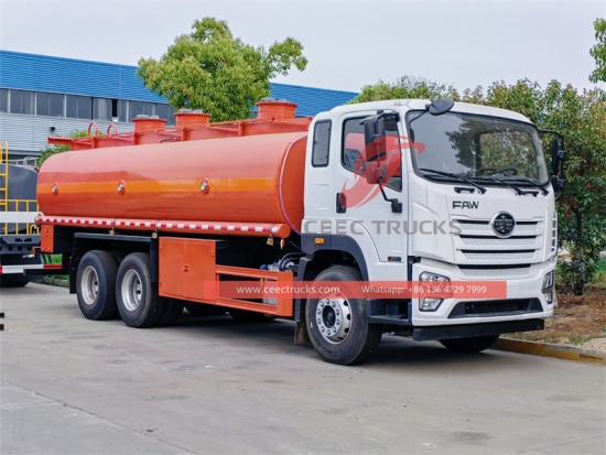 FAW 25,000리터 연료 운송 트럭 판매합니다. FAW 6x4 LHD 섀시, 9단 수동 변속기, WEICHAI 260마력 디젤 엔진, 기본 연료 탱크, 유명 브랜드 연료 펌프가 기본으로 제공됩니다. 모든 도색 및 로고는 고객 요청 사항에 따라 달라질 수 있습니다.