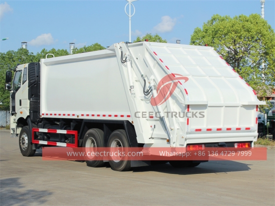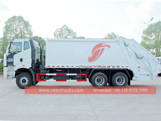 FAW 6x4 20cbm 폐기물 압축기 트럭, FAW 6x4 좌측 핸들 대형 트럭 섀시, WEICHAI 350마력 디젤 엔진, 10단 변속 기어 장착. CAN 버스 제어 시스템으로 간편한 조작. 모든 도색 및 로고는 고객 요구 사항에 따라 제작됩니다.