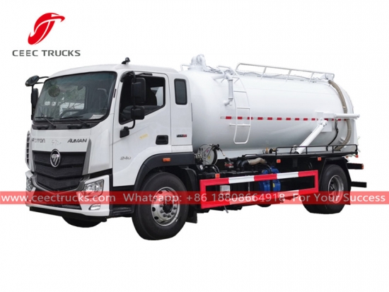FOTON 10,000리터 진공 흡입 트럭, FOTON 4x2 좌측 핸드 드라이브 섀시, 6단 수동 기어박스, CUMMINS 154HP 디젤 엔진, 강력한 흡입 탱커, 유명 브랜드 진공 펌프, 모든 도장 및 로고는 요구 사항에 따라 달라집니다.