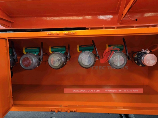 에이…탱크는 고무 타이어에서 발생하는 정전기를 방전하기 위해 접지되어 있으며, 이는 연료 이송 작업 중 화재를 유발할 수 있습니다. 고객님의 요청에 따라 기어박스로 구동되는 동력 인출 장치(PTO)를 탱크에 추가하여 연료를 흡입하거나 배출하도록 제어할 수 있습니다.