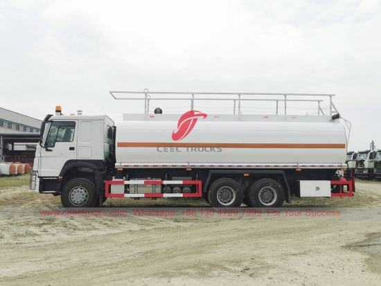 HOWO 20,000리터 연료 운송 트럭 판매합니다. HOWO 6x4 LHD 섀시, 10단 수동 변속기, WEICHAI 371마력 디젤 엔진, 기본 연료 탱크, 유명 브랜드 연료 펌프가 기본으로 제공됩니다. 모든 도색 및 로고는 고객 요청 사항에 따라 달라질 수 있습니다.