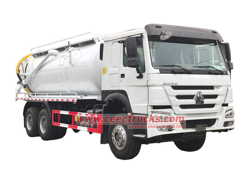Howo 20 cbm 침전조 펌프 트럭(진공 청소기 트럭, 하수 청소 트럭, 하수 진공 트럭, 트럭 장착 하수 청소기 등으로도 불림)은 더러운 물, 슬러지, 침전물, 원유 및 작은 돌, 벽돌과 같은 고체 물질과 같은 액체를 수집, 운반 및 배출하는 데 사용됩니다. 하수구, 정화조, 협곡 등을 청소하는 데 적합합니다.
