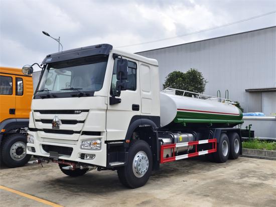HOWO HW76, NX cabin is optionalHOWO 6×4 물탱크 트럭은 SINOTRUK HOWO ZZ1257 6×4 구동 섀시를 기반으로 개조된 다기능 친환경 위생 차량입니다. 20,000L 탄소강 물탱크, 80QZ60/90형 물펌프, 그리고 스프링클러 시스템이 장착되어 있습니다. 차량은 내장된 펌프를 사용하여 외부에서 물을 자체적으로 공급받아 전방/후방/측면 스프링클러와 35m 이상 사거리의 물대포로 분사하여 다양한 분사 모드를 구현합니다.