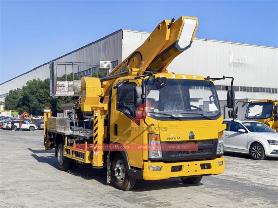 Insulation bucket can be achieved그만큼 HOWO 18m aerial platform truck is a professional engineering special truck that integrates excellent technical performance and safety design. Built on the Howo light duty chassis, the truck is equipped with a ISF3.8s3154 engine with a maximum output power of 154 HP and a total vehicle mass of 8 300kg, which is flexible and powerful. The Howo light duty aerial platform truck has a maximum working height of 18 meters and a maximum working radius of 6 meters, and adopts a hydraulic static balance system to ensure stability.