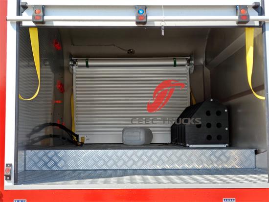 4. 차체 구조 및 소재 기술: 소방차의 차체 구조는 내구성과 기능성에 직접적인 영향을 미칩니다. 고강도 특수강으로 제작된 차체와 알루미늄 합금으로 제작된 장비실은 강도를 보장할 뿐만 아니라 경량화에도 기여합니다. 녹슬지 않는 알루미늄 합금 구조와 같은 방청 설계는 Howo 소방차의 수명을 연장합니다. 또한, 빗물받이가 있는 롤링 셔터 도어와 300kg의 하중을 견딜 수 있는 미끄럼 방지 페달과 같은 세심한 설계는 안전성과 사용 편의성을 모두 고려했습니다.