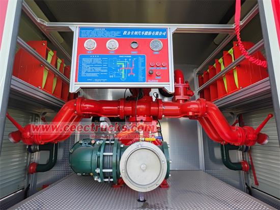 ●소화 장비 매트릭스:80mm 소방호스(릴 10개, 릴당 길이 20m), 물 수집기/물 분배기/물 필터, 리듀서(DN50-DN150 파이프 직경에 맞게 조정 가능), 폼 건(유량 48L/s) 및 다기능 물 건(직류/꽃/분사 3가지 모드)이 장착되어 있습니다.