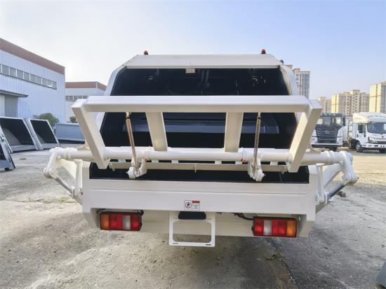 Rear tilting device for 360L and 1100L metal bins그만큼 6 CBM rear loader truck is built on the Howo light duty chassis, equipped with an YN4102QBZL diesel engine with a maximum power of 1 16 HP and a peak torque of 290 Nm, matched with a 6-speed manual transmission WLY. It is powerful and stable, and can challenge all kinds of difficult roads. The garbage compactor bin is made of high-tensile steel, and key parts such as the floor (4mm) and side panels (3mm) are reinforced by laser/plasma cutting and automated welding processes to ensure the durability of the body. With its efficient compaction, strong power, modular design and strict manufacturing standards of the CEEC trucks factory, the Howo 6 CBM rear loader truck has become an ideal solution for urban garbage disposal around the world.