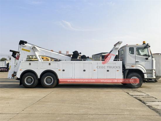 이 무거운 duty wrecker, built by CEEC Trucks Group, utilizes the Howo NX cabin 6 x 4 drive chassis and is equipped with a powerful Howo WP10.340E22 diesel engine (3 4 0 HP /1250N . m of torque) and an HW1 9710 10 -speed transmission. Combined with an HF9-ton front axle and HC16-ton rear axle, it ensures exceptional power, load-bearing capacity, and reliability. It incorporates two 1 2 ton s hydraulic winches, resulting in an impressive rated towing capacity of 30 tons, making it ideal for handling accidents involving large trucks, buses, and construction machinery.