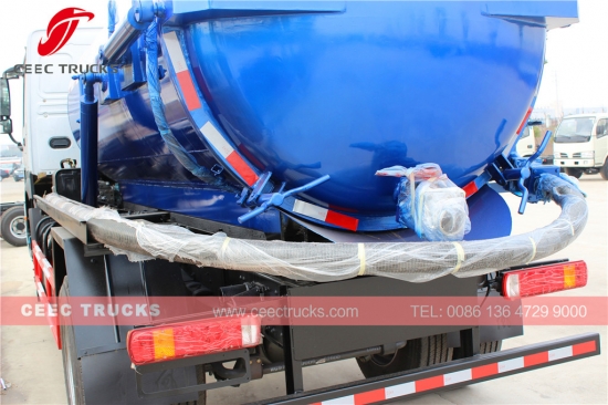 하수 진공 트럭(하수구 청소차, 하수 탱크차, 하수구 트럭, 오수구 비우기, 배수구 비우기, 진공 트럭, 배수구 비우기, 폐기물 진공 탱크차, 진공 탱크차, 하수 트럭이라고도 함) 오수, 슬러지, 정화조, 원유 등의 액체와 작은 돌, 벽돌 등의 고형물을 수거, 운반, 배출하는 데 사용됩니다. 하수구, 정화조, 오수통, 도랑 등의 청소에 적합하며, 환경 및 위생 분야에서 널리 사용됩니다.