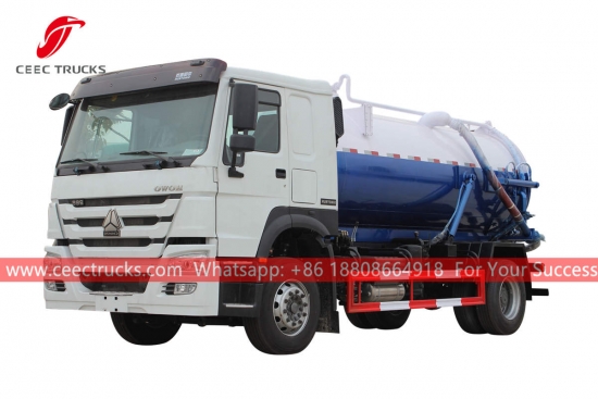 HOWO 10cbm 진공 하수 흡입 트럭, HOWO 우측 핸들 구동 모델 4x2 섀시, 9단 수동 기어박스, WEICHAI 266HP 디젤 엔진, 중국 유명 브랜드 진공 펌프, 페인팅 및 로고는 요구 사항에 따라 달라집니다.
