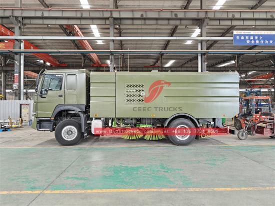Stainless steel그만큼 Howo 트럭 장착형 진공 도로 청소기 강력한 청소 성능과 효율적인 작동을 자랑하는 중장비로, 도심 거리, 산업 단지, 행정 건물 청소에 적합합니다. 6CBM 집진 탱크와 4CBM 물탱크, 그리고 4mm 스테인리스 스틸 스위퍼 본체가 결합되어 내구성과 효율적인 청소를 보장합니다. 300마력 디젤 엔진과 HW 10단 변속기가 장착되어 강력하면서도 부드러운 주행감을 선사합니다.