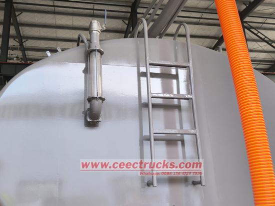 ● 탱크가 먼지로 가득 차면 진공 펌프를 끄고 호스를 분리한 다음 차량을 지정된 배출 위치까지 주행하여 탱크 후면의 하수 배출구를 통해 먼지를 배출합니다.