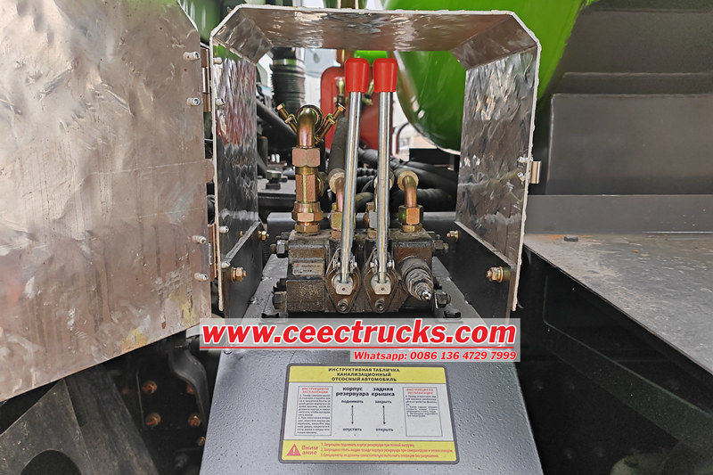 이스즈 청소 및 하수 흡입 트럭에는 하수관에서 잔해물, 슬러지 및 기타 폐기물을 효과적으로 제거할 수 있는 고출력 진공 시스템이 장착되어 있습니다. 이 시스템의 용량은 10세제곱미터로, 하수 시스템에서 대량의 폐기물을 빠르고 효율적으로 흡입할 수 있습니다. 이를 통해 하수관을 완벽하게 청소하고 향후 막힘 발생을 방지할 수 있습니다.