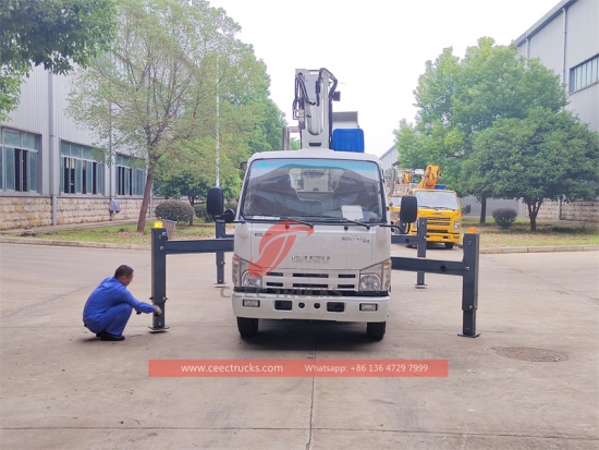 13m 버킷 크레인 리프팅 트럭, 이스즈 100P 4x2 섀시, 5단 수동 변속기, 이스즈 98마력 디젤 엔진, 도색 및 로고는 요구 사항에 따라 달라집니다. 고객 언어 제어 박스.