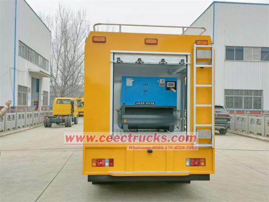 3. 고출력 전원 공급 시스템: 이스즈 이동식 소방차는 제어 캐비닛이 있는 수입 일본 HONDA SHT11500 모델 발전기를 장착하여 11.5kw의 220V 및 380V 전원을 공급할 수 있어 동시에 작동하는 많은 전기 장비의 요구 사항을 충족할 수 있습니다.